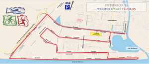 Onderstaand plaatje toont het gebied wat voor de triatlon afgesloten is.